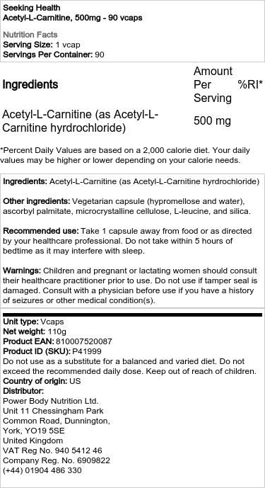 - Obsahuje 500 mg Acetyl-L-karnitínu na vegetabilnú kapsulu