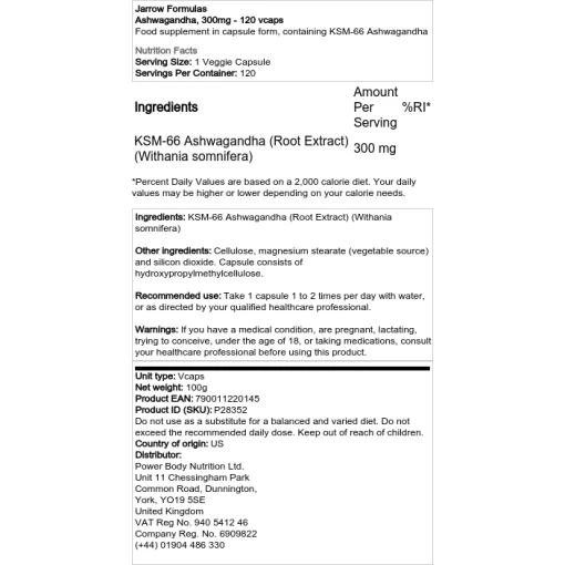 Jarrow Formulas – Ashwagandha je doplnok stravy obsahujúci 300 mg známej byliny ashwagandha v každej kapsule. Tento produkt je navrhnutý tak, aby podporoval aktívny životný štýl a celkové pohodlie prostredníctvom prírodných zložiek.