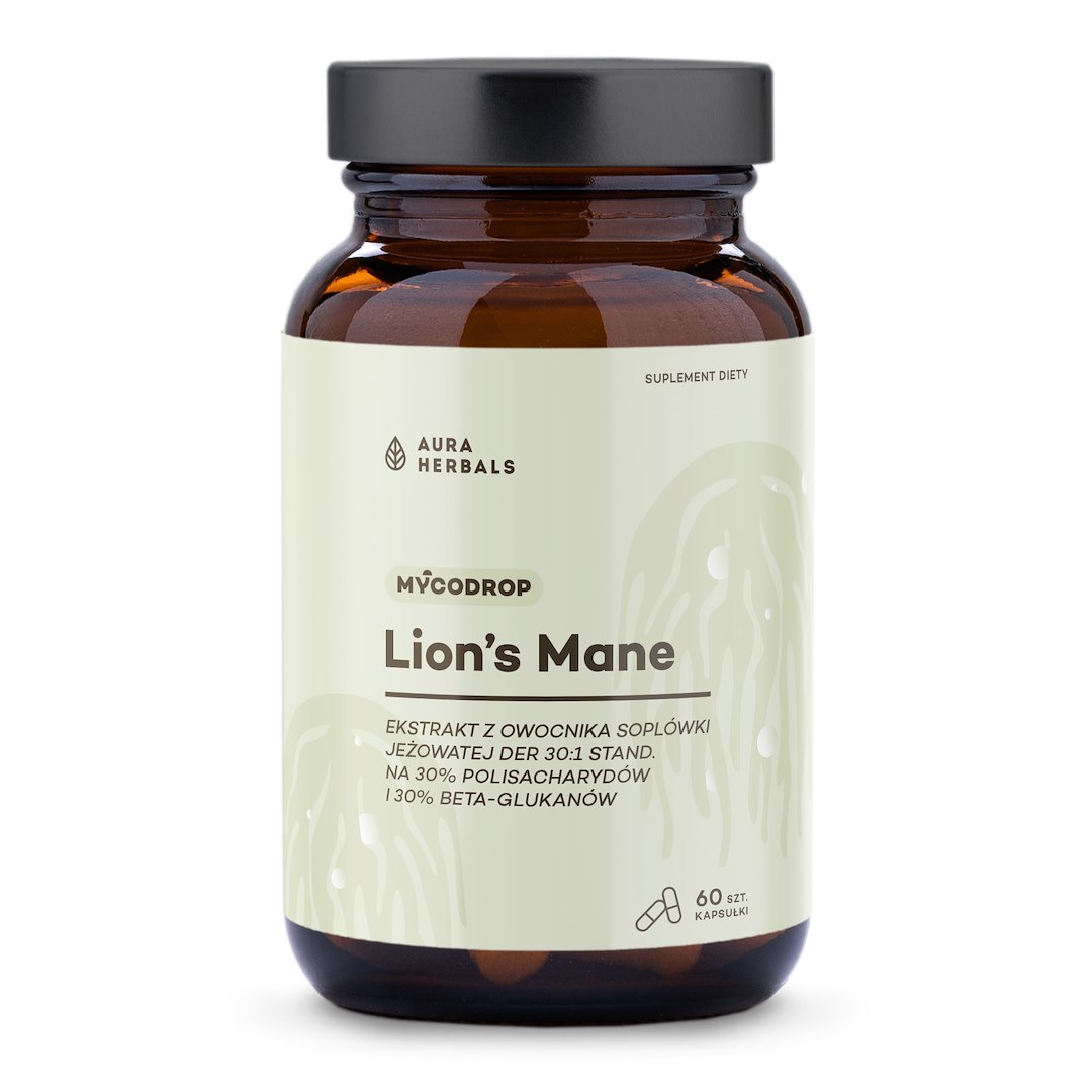 Názov produktu: Aura Herbals – AURA HERBALS Mycodrop, Lion’s Mane 30:1, 30% beta-glukan (60 kapsúl)