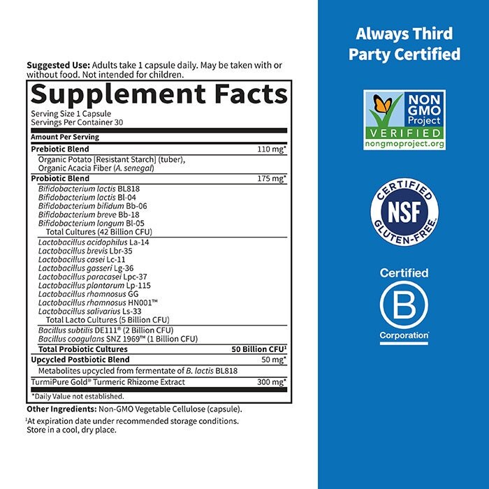 Tento probiotický vzorec môže prispieť k celkovému blahobytu tým, že podporuje prirodzenú rovnováhu tela. Pri pravidelnom užívaní môže pomôcť podporiť zdravší životný štýl a umožniť vám cítiť sa dobre vo vašom každodennom živote.
