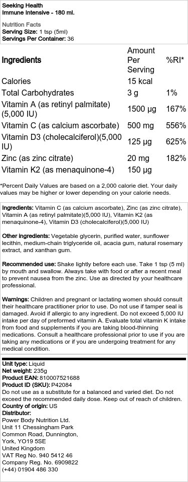 Imunita Intenzív je pokročilý doplnok stravy, ktorý poskytuje silnú zmes esenciálnych živín navrhnutých na podporu imunitného systému. Tento tekutý doplnok je vyvinutý pre optimálnu absorpciu a biologickú dostupnosť.