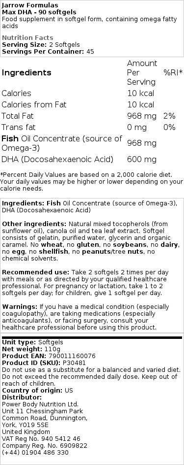 Max DHA od Jarrow Formulas sa vyrába zodpovedne a s ohľadom na životné prostredie. Zaručujeme produkt bez GMO a alergénov ako je lepok, čo ho robí vhodným pre väčšinu diét.