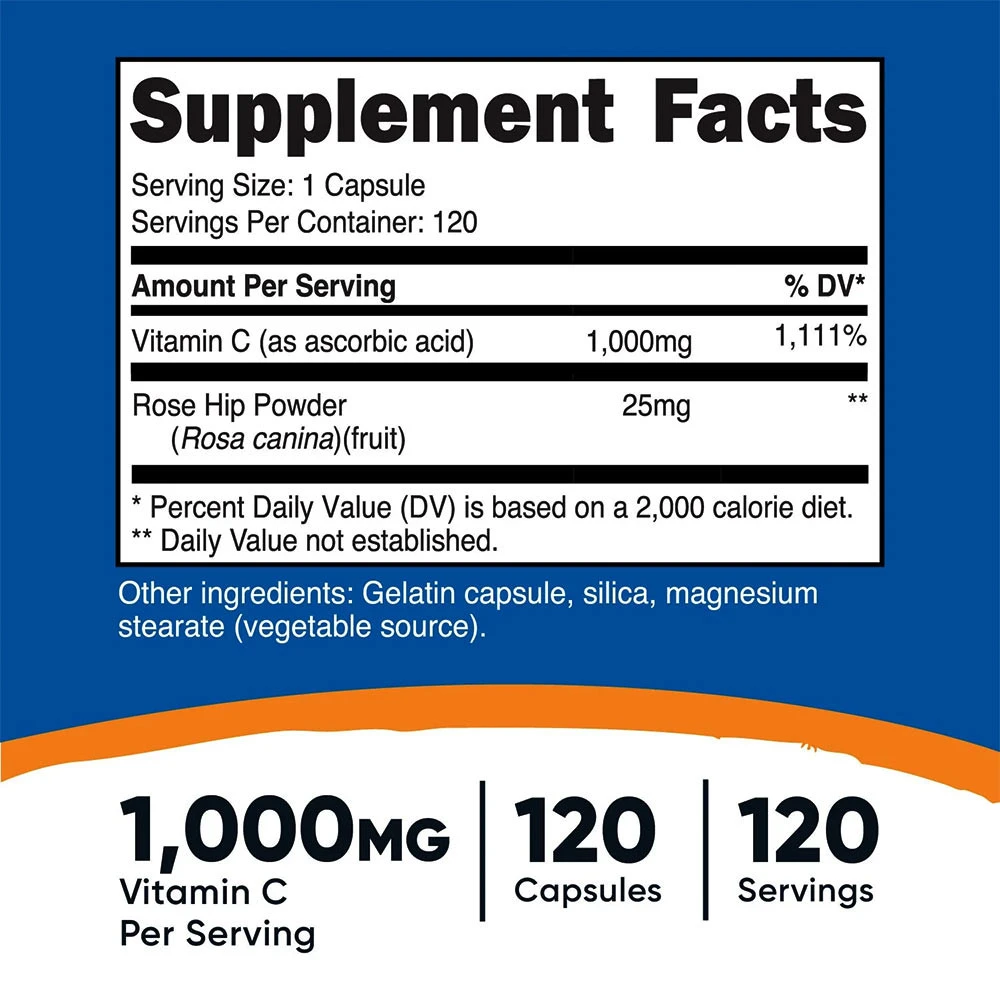 Nutricost – Vitamín C s šípkami v kapsulách (120 kapsúl)