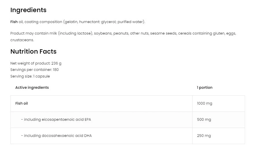 Tento doplnok stravy obsahuje vysoko čisté omega-3 mastné kyseliny. Zložky sú získané z prírodných zdrojov, čo zdôrazňuje ich prvotriednu kvalitu.