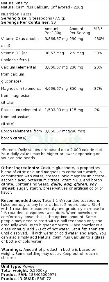 Natural Vitality’s CALM od roku 1982 prispieva k relaxácii a redukcii stresu prostredníctvom prírodného morského magnézia. Náš obľúbený, chutný doplnok bez pridaných aróm sa ľahko mieša s vodou a tvorí roztok citrátu magnézia, ktorý je účinne absorbovaný telom. Táto špeciálna formula je navrhnutá tak, aby podporovala zdravé hladiny magnézia a podporovala pocit pokoja.