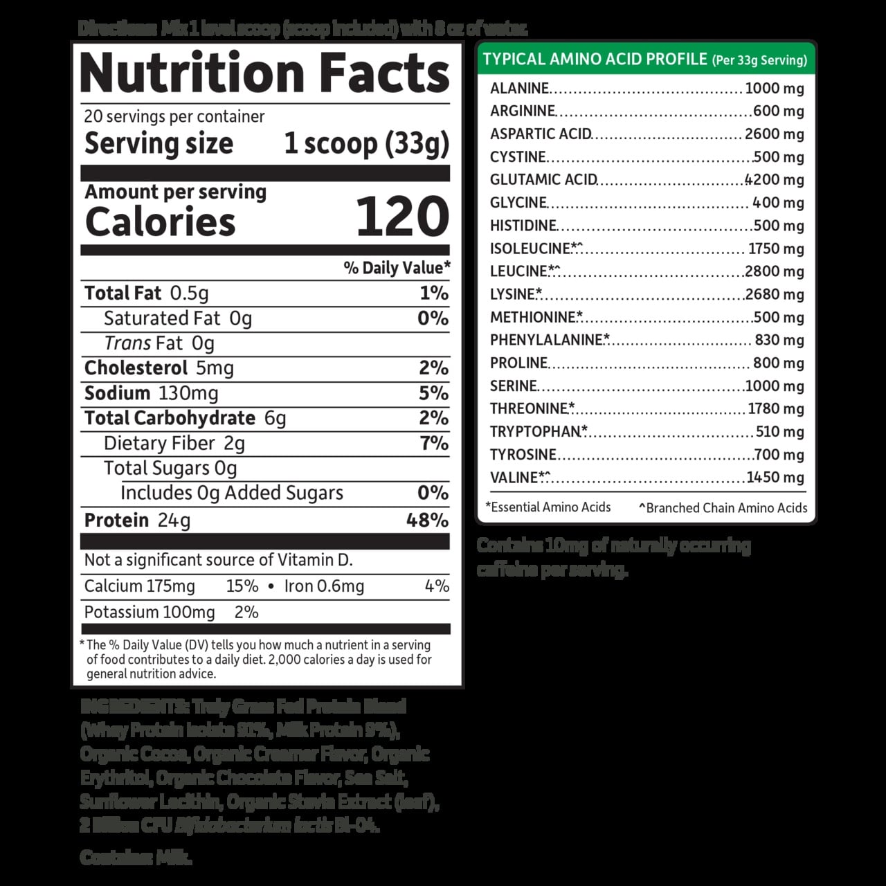 Zahrnutím Garden of Life’s Sportscertificeret Græsfodret Valleprotein v Chocolade flavour do vašej denne rutiny nielen že posilníte svoje vystupenie ale tiež si užijete produkt vyrobeny so starostlivosť o životné prostredie and dobrú pohodu zvierat. Zažite rozdiel vo vašem pocitu pohody pri pravidelném pouzivani.“