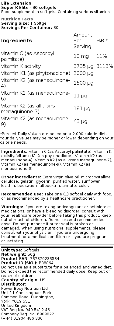 Super K Elite obsahuje rôzne formy vitamínu K, ktoré spolupracujú na podpore optimálnej rovnováhy vápnika a podporujú pevnosť kostí a zdravie ciev. Tento denný doplnok je naším najkompletnejším riešením pre zabezpečenie príjmu vitamínu K, navrhnutým tak, aby podporoval zdravie kostí aj srdca len jednou kapsulou denne.