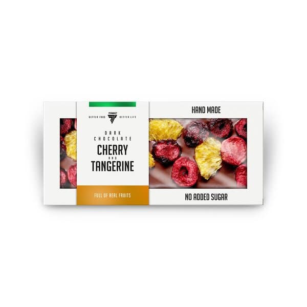 Objavte lahodnú chuť tmavej čokolády obohatenej o prírodné lyofilizované višne a mandarínku, bez pridaného cukru.