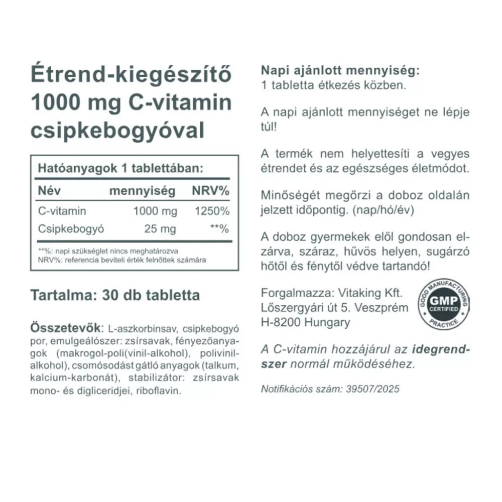 Vitaking C-1000 mg with 25 mg Rosehip (30 Tablets)
