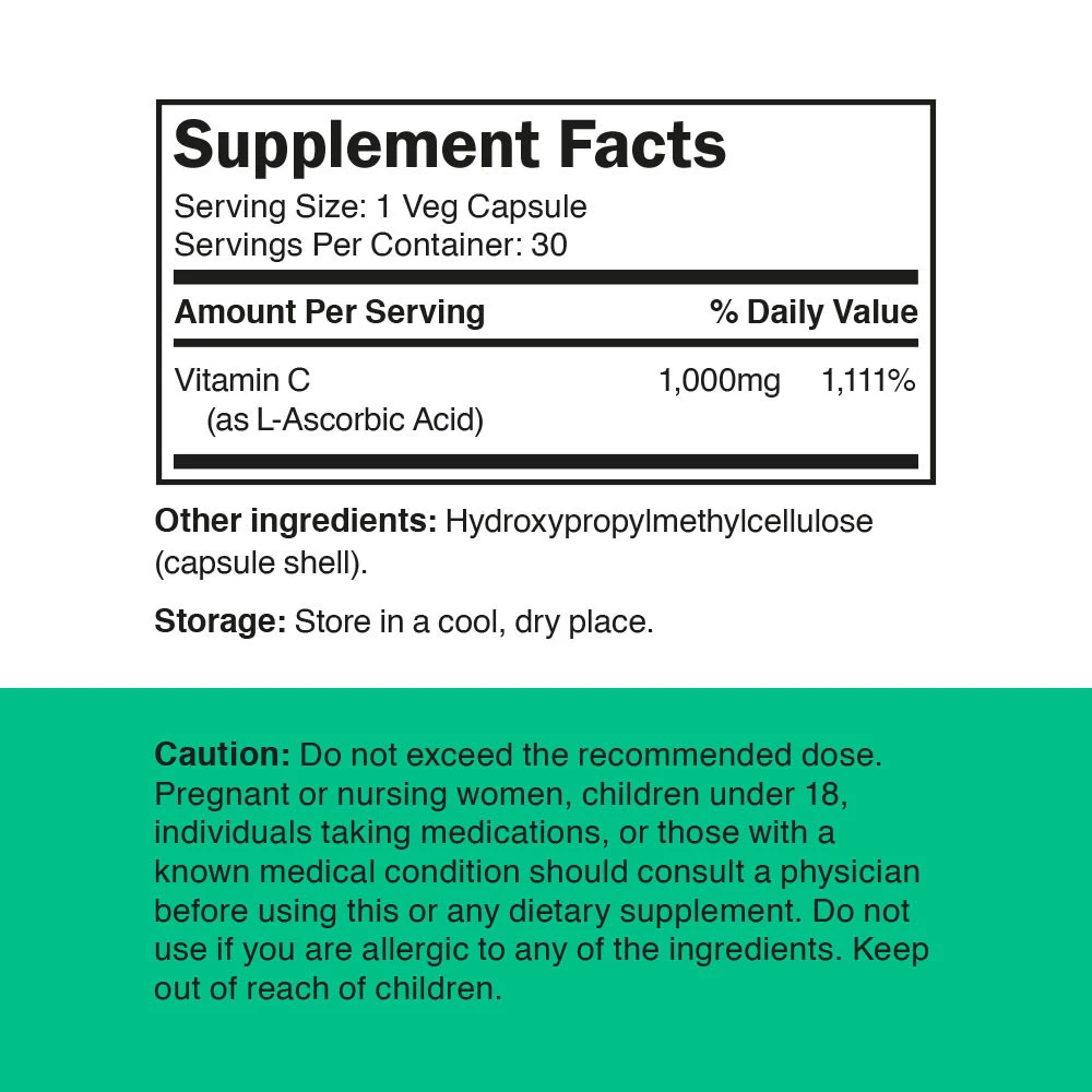 Zloženie: každá kapsula obsahuje 1000 mg vitamínu C, ktorý je známy svojím prírodným pôvodom a vysokou čistotou. Tento produkt je formulovaný tak, aby bol vhodný pre vegetariánov.