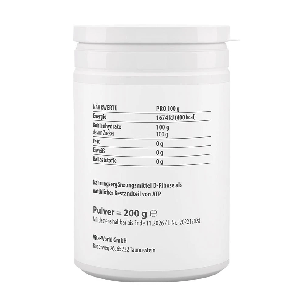 Zloženie: Tento produkt je vyrobený z prírodných zložiek, ktoré sú známe svojou čistotou a prirodzenosťou. Vitaworld D-Ribose je balený vo forme prášku, čo umožňuje jednoduché použitie.