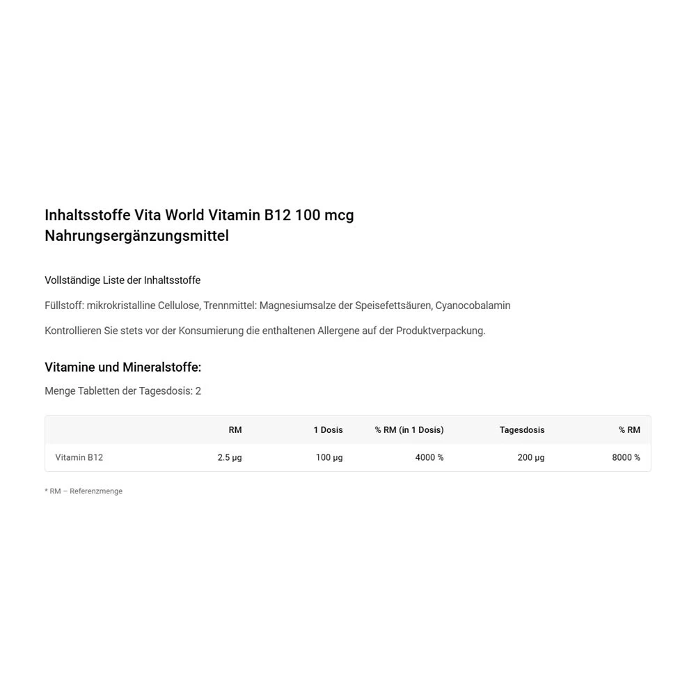 Vitaworld Vitamin B12 100 mcg (180 Capsules)