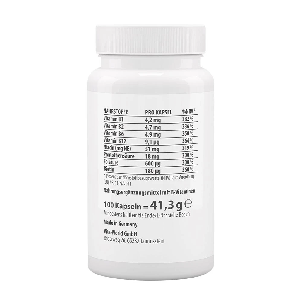 Zloženie: Tento produkt obsahuje komplex vitamínov skupiny B,ktoré sú získané z prírodných zdrojov. Každá kapsula je navrhnutá tak, aby spĺňala vysoké štandardy čistoty a kvality.